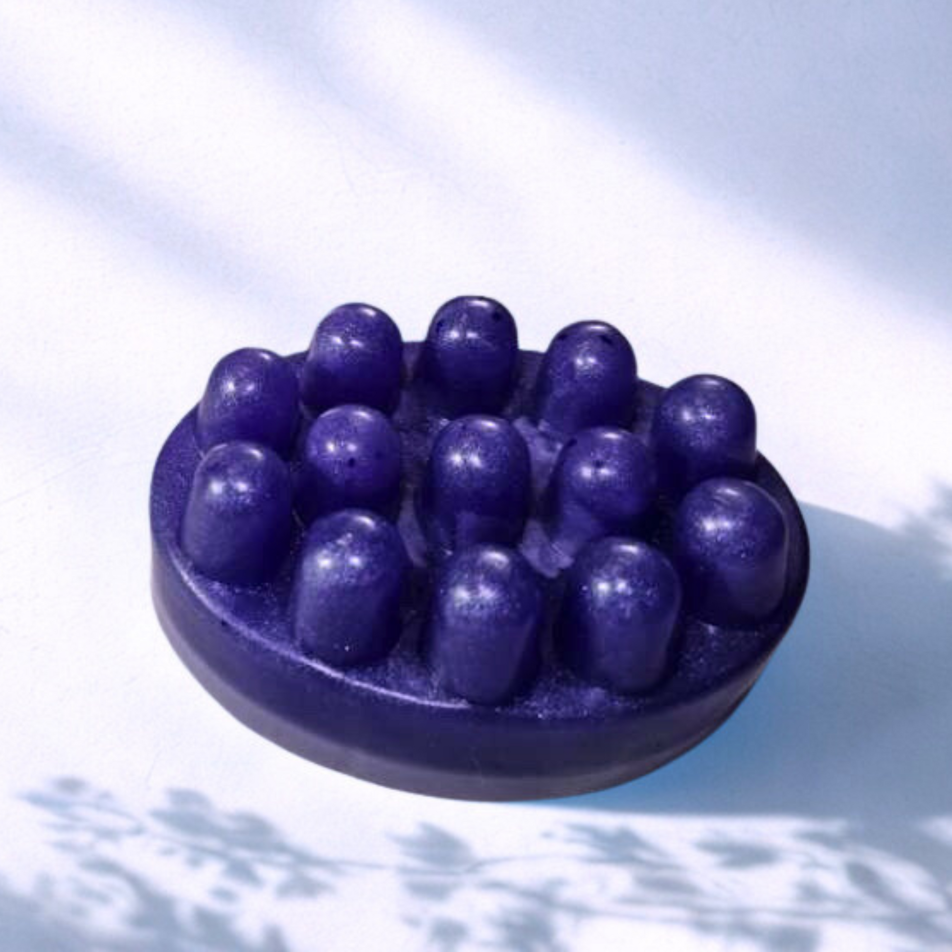 Let tension melt and skin shine with this cosmic purple powerhouse. Our Midnight Glow Massage Bar is designed to ease knots, lift moods, and leave your skin radiant. The unique noduled shape stimulates circulation and gently massages away stress while the bar melts into skin-loving oils.